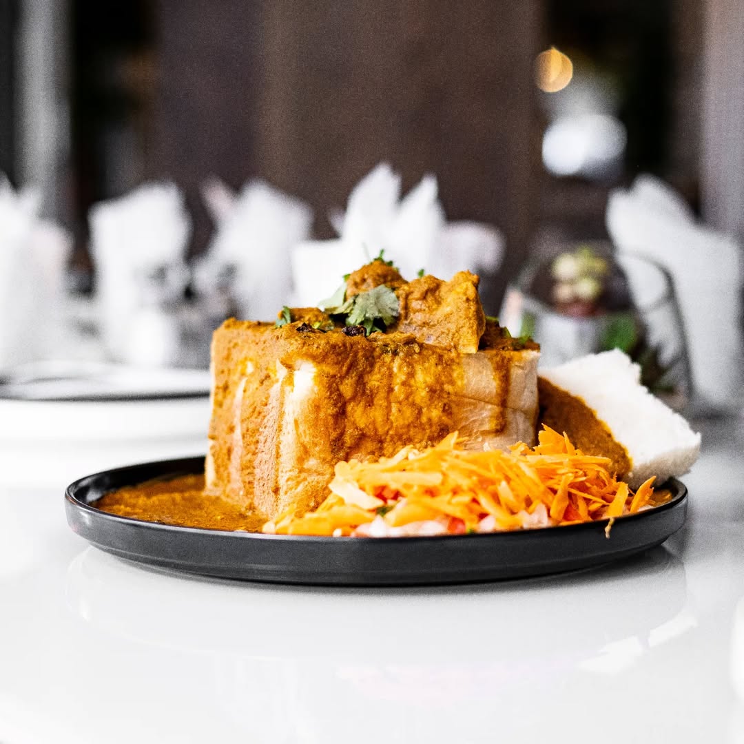 Slow cooked mutton curry, rich, spiced, and full of depth, served inside a quarter loaf that soaks up every bit of flavour. A true Durban favourite, hearty, comforting, and made for serious curry lovers.